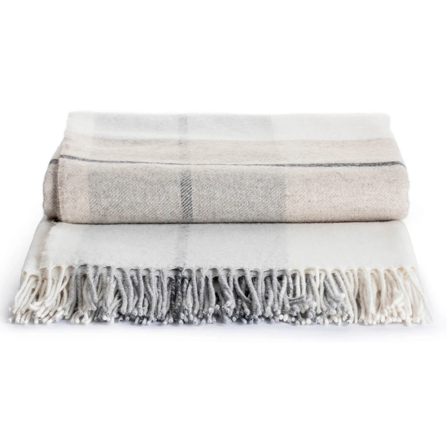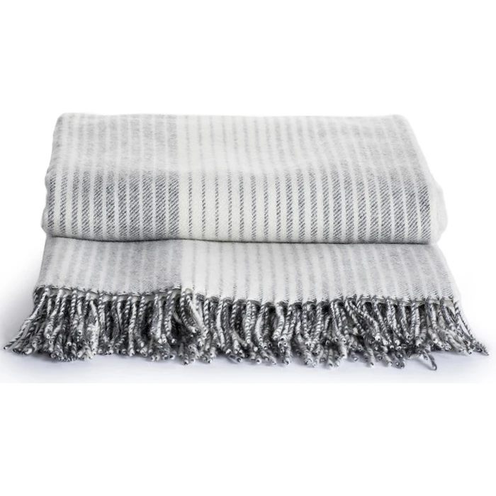 Klassinen torkkupeitto lahjalaatikossa. Torkkupeitto on laadukas sekoitus villaa, kašmirvillaa, polyesteriä sekä akryyliä. Huovassa kontrastivärinen raitakuvio tai ruutukuvio ja peiton päissä hapsut.
