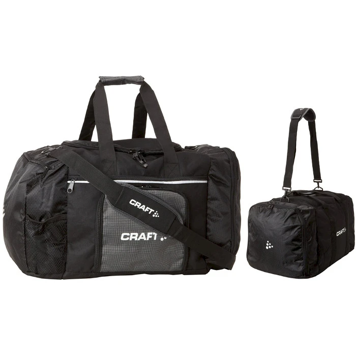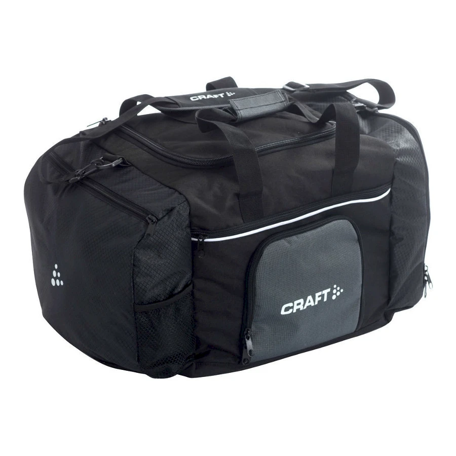 Craft New training bag on keskikokoinen treenikassi, jossa useita taskuja tarvikkeille, kengille ja vaatteille. Viisi taskua. Verkkoneulostasku vesipullolle.