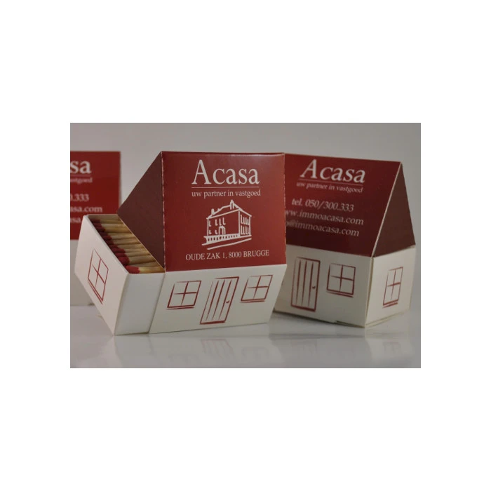 Kolmion muotoinen tulitikkuaski. Talon mallinen tulitikkuaski sisältää noin 80 kpl tulitikkuja. Koko 56 x 46 x 67 mm. Monivärinen mainospainatus voidaan tehdä askin ulkopuolelle. Pyydä tarjous omasta määrästä ja toteutuksesta. Europe Matchin tulitikut ovat laadukkaita ja ympäristöystävällisiä. Tulitikut eivät sisällä rikkiä eikä raskasmetalleja. Kaikki toimittamamme tulitikut ovat EU-aluella valmistettuja ja ne täyttävät EU-standardit. Europe Matchin tikut, tulitikut, tulitikkurasiat ja tikkuaskit ovat näyttäviä mainostikkuja ja myös turvallisia käyttää.