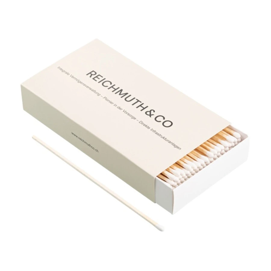 Iso tulitikkurasia jossa 160 kpl pitkää tulitikkua. Tulitikkujen pituus on 185 mm. Iso tulitikkurasia, jossa on yhteensä 160 pitkää tulitikkua. Tulitikkujen pituus on 185 mm. Painatus (neljällä värillä) tehdään Pantone-värijärjestelmän mukaisesti, ja sen ylittävät värit CMYK-järjestelmän mukaan. Voit valita vapaasti 16 eri raapaisupään väristä ja 7 eri puun sävystä. Valmistettu EU:ssa.