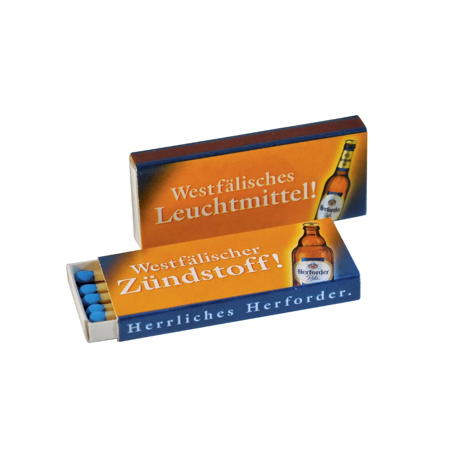 Tulitikkurasia BX1 on pidetty ja suosittu tulitikkurasiamalli. Tulitikkurasia on pienikokoinen rasia sopii niin hotelleille, ravintoloille kuin yrityksille ja yhteisöille mainostarkoituksiin. Askin koko: 56 x 24 x 7 mm. Sisällä noin 11 kpl tulitikkuja. Valokuvatasoinen monivärinen mainospainatus askin kanteen.Tikunpäänväreinä: punainen, sininen, vihreä, keltainen tai vailkoinen.Tulitikkurasiamme ovat korkealaatuisia ja turvallisia "Safety Match" - tulitikkuja. Kaikki tulitikkumme on valmistettu euroopassa. Tulitikkut on valmistettu ympäristöystävällisesti ne eivät sisällä rikkiä eivätkä raskasmetalleja. Pyydä tarjous omasta määrästä ja toteutuksesta.