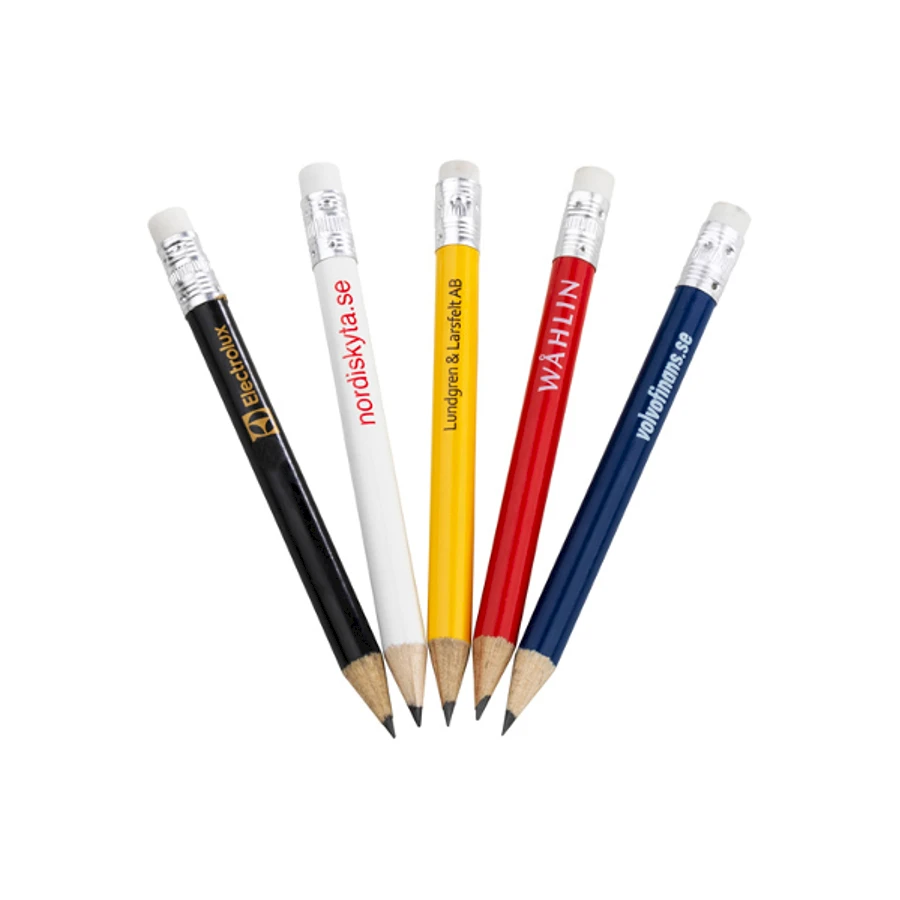Pieni puinen lyijykynä pyyhekumilla tai ilman kumia. Ympäristöystävällinen puinen tuloskynä on hyvä vaihtoehto golfkentälle. Lyijykynän pituus 9,5 cm.