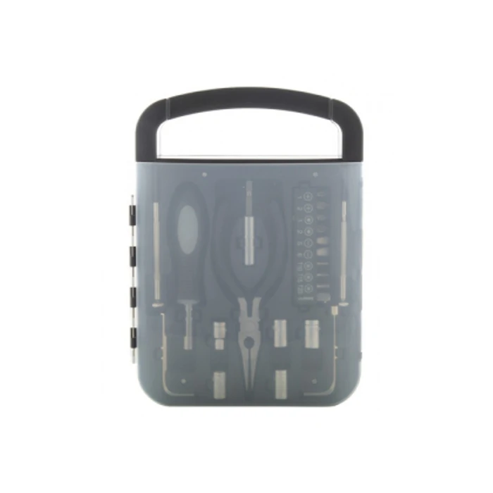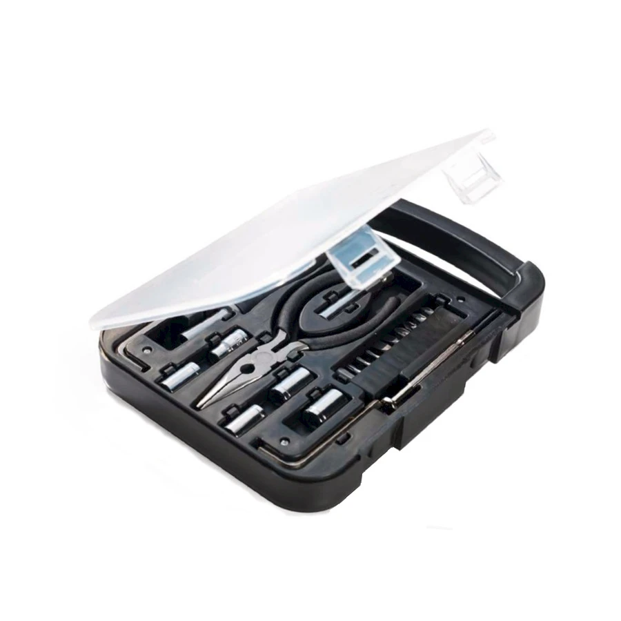 Käytännöllinen 22 sarjan työkalusetti. Käytännöllinen lahja jossa on kaikki tarvittava kodin ja mökin pieniin korjauksiin. Kompaktissa työkalusetissä on lujat teräksiset ruuvarit ja pihdit, jatkopala hylsyille ja ruuvikärjille, 10 ruuvauskärkeä, 2 ruuvimeisseliä, väänninkahva, 2 kuusiokoloavainta ja 5 hylsyä. Säilytyskotelon koko 16 x 22 x 2,7 mm. Pyydä tarjous omasta määrästä ja logopainautksesta.