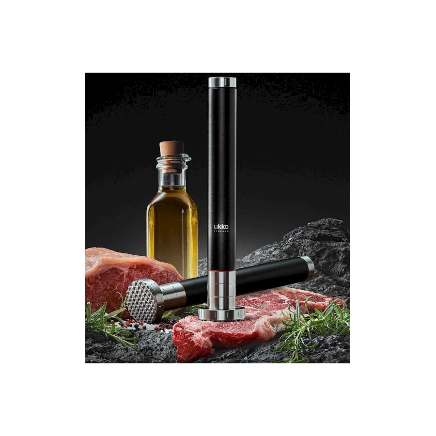 Ukko Hakka XO lihanuija on yhdistelmä maskuliinista jaloterästä ja minimalista, suomalaista suunnittelua ja käsityötä. Sen viimeistelty tyylikkyys syntyy huipputeknologian ja perinteisen käsityötaidon liitosta. Hakka on suomalainen sorvareiden taidonnäyte. Kärkiosa on teräksestä jyrsitty timantti, joka puree optimaalisesti lihan pintaan. Pakattu lahjalaatikkoon. Saat tuotteeseen yrityksesi logokaiverruksen tai personoinnin. Pyydä tarjous.