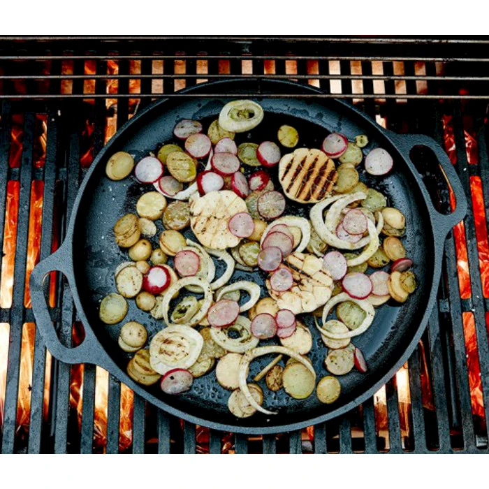 Valmista itse Suomen paras pizza! Käytä valurautaista pizzapanua ulkogrillissä, uunissa tai suurikokoisella liedellä. Iso pannu on valmistettu valuraudasta joka kestää kovan lämpötilan. Kovaa lämpötilaa kaipaa myös pizza, jotta pohjasta saadaan rapea. Tuote sopii mainiosti myös mille tahansa muulle ruoalle joka tarvitsee isoa pintaa ja valuraudan loistavia ominaisuuksia. Toimii jopa induktiolla. Koko: halkaisija 33 cm. Pakattu lahjalaatikkoon.Materiaali: valurautaaKoko: 33 cm