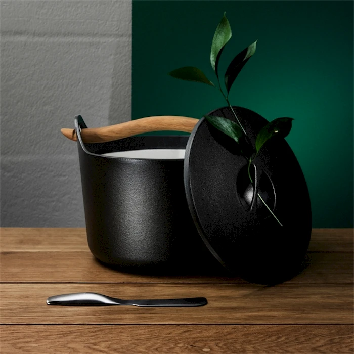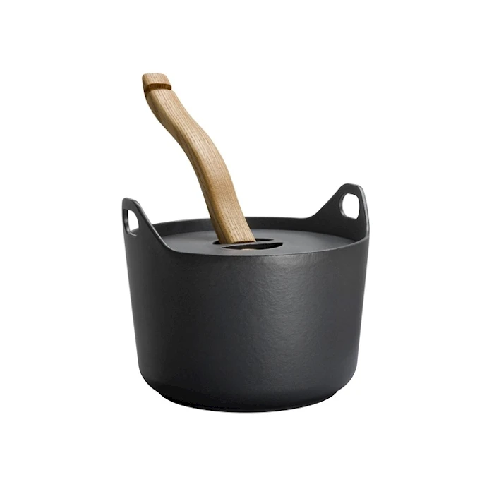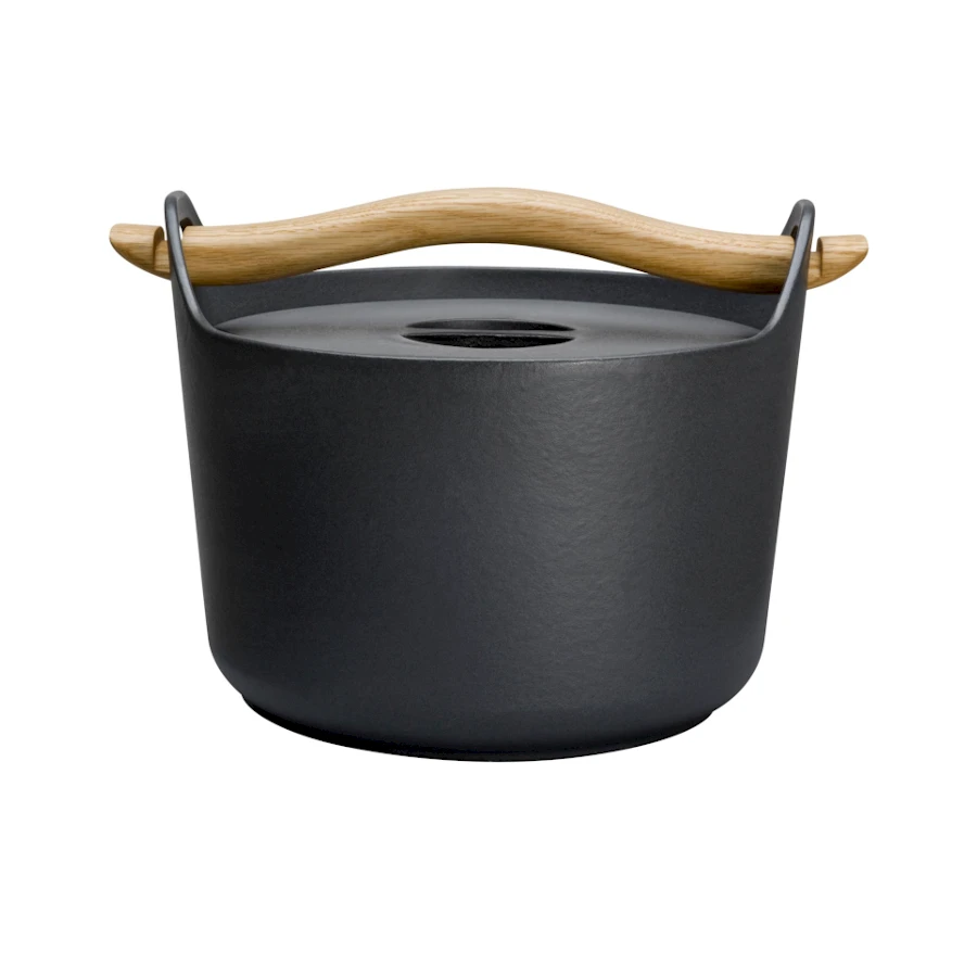 Sarpanevan käytännöllinen ja jykevä valurautapata irrotettavalla puukahvalla. Paksun valuraudan ansiosta ruoka kypsyy hitaasti ja tasaisesti liedellä tai uunissa. Emalipinnoite on helppo puhdistaa eikä siihen tartu makuja ruoka-aineista. Paksun puukahvan avulla kansi on helppo poistaa tai koko pata nostaa pöytään sormia polttamatta. Muotoilija Timo Sarpanevan selkeälinjainen ja käytännöllinen pata edustaa modernia skandinaavista käyttöesinemuotoilua parhaimmillaan. Haluttu lahja.
