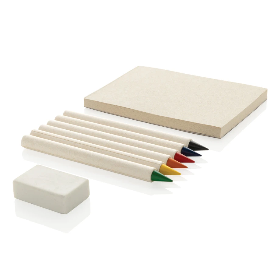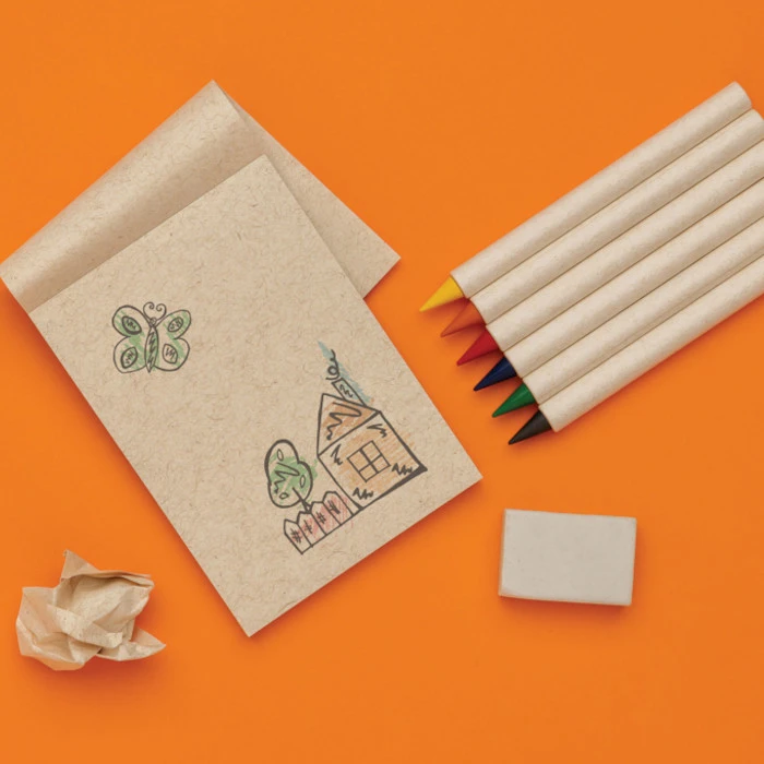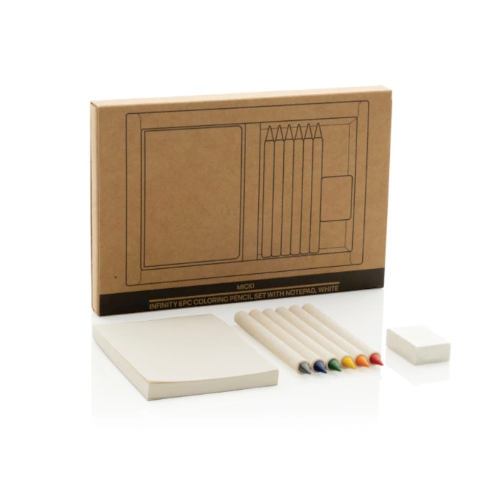 GRS-sertifioitu värikynäsetti muistilapulla. Setti sisältää 6 värikynää. Värikynät on valmistettu 69 % kierrätetystä GRS-sertifioidusta maitokartonkipaperista. Kynän sileällä grafiittikärjellä on helppo värittää. Perinteiset värikynät kestävät noin 200 metriä, mutta näillä Tree-Free Infinity -kynillä voi kirjoittaa jopa 20 000 metriä. Ne tuottavat tasaisen viivan, ne on helppo pyyhkiä pois ja ne kestävät jopa 100 tavallista värikynää kauemmin. Lisäksi setissä 50 arkin muistilappu. Kynät toimitetaan FSC®-kraft-pakkauksessa. Tässä ekologinen värityssetti lapsille ja värikäs setti henkilöille luovuuden ja ideoiden kirjaamiseen.