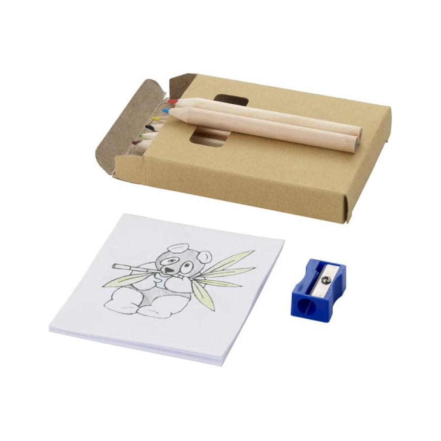 Värikynäsetti 8-osainen. Setti sisältää 6 värikynää, terottimen ja värityskirjan. Koko: 72 x 90 x 14 mm. Logomerkkaus mahdollista painaa värikynien laatikkoon. Värikynäsetti logolla on luova ja edullinen mainoslahja, joka sopii erinomaisesti tapahtumiin, messuille ja asiakaslahjaksi kaikenikäisille.