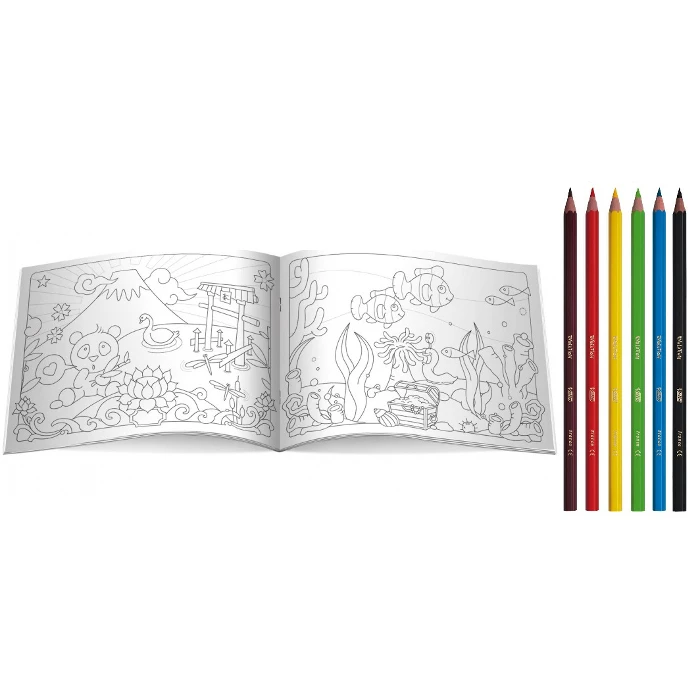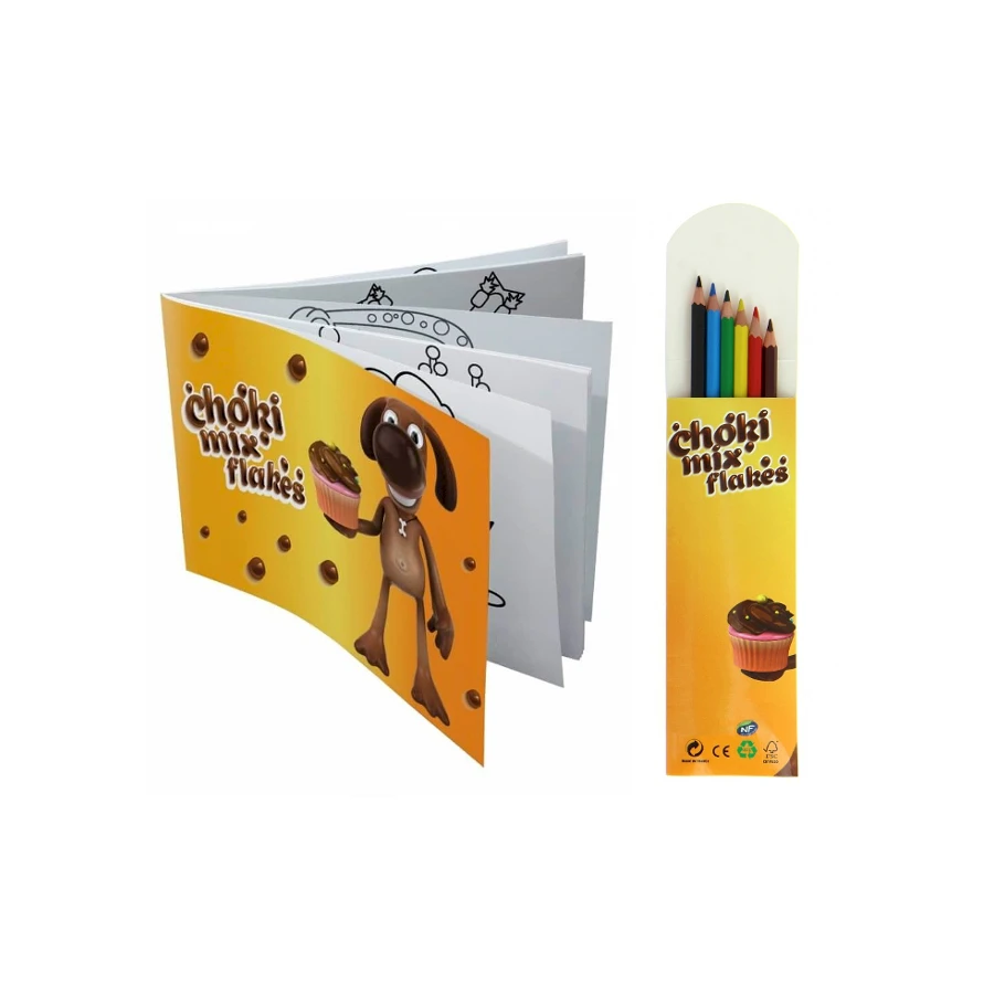 Väritysetti lapsille sisältää 16 sivuisen värityskirjan ja 6 kpl värityskynää. Värityskirjasetti on mieleinen lahja lapsille ja helppo ottaa mukaan vaikkapa matkalle. Saat monivärisen mainospainatuksen kynäpakkaukseen ja vihkoon kanteen. Väritysvihko ja puiset värityskynät on pakattu puuvillaiseen vetonarupussukkaan. Värityssetti +3 vuotiaille. CE-merkitty.