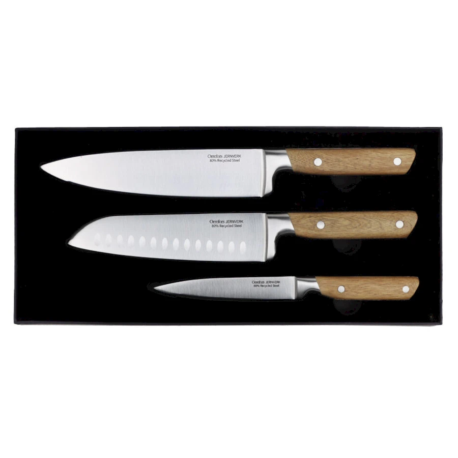 Rustiikkinen veitsisetti kierrätetystä, taotusta teräksestä. Kestävä ja toimiva arjessa – tyylikäs myös lahjana. Pakattuna lahjalaatikkoon.