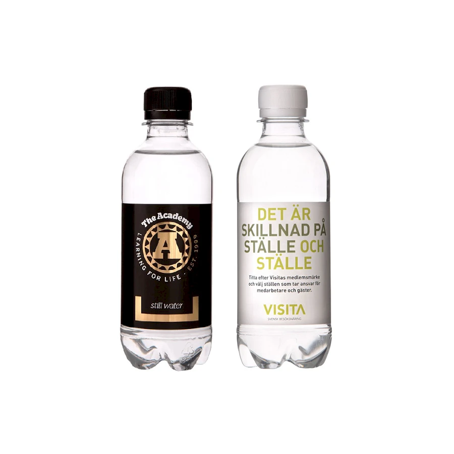 Vesipullo omalla logopainetulla etiketillä on suosittu ja pidetty tuote messuilla ja yrityksesi erilaisissa tapahtumissa. Mainosveden, profiiliveden ja mainosjuomien käyttö erilaisissa tapahtumissa ja markkinoinnissa on suosittua. Pullo on kierrätettävä PET-pullo. Pullon sisältövaihtoehdot: tavallinen vesi, hiilihapotettu vesi, sitruunan- tai päärynän makuinen vesi. Korkin väri valittavissa. Korkkivaihtoehdot urheilukorkki tai tavallinen korkki. Tilaa vesipullo omalla etiketillä – käytännöllinen ja näkyvä mainoslahja, joka vahvistaa yrityksesi brändiä joka tapahtumassa ja jokapäiväisessä käytössä.