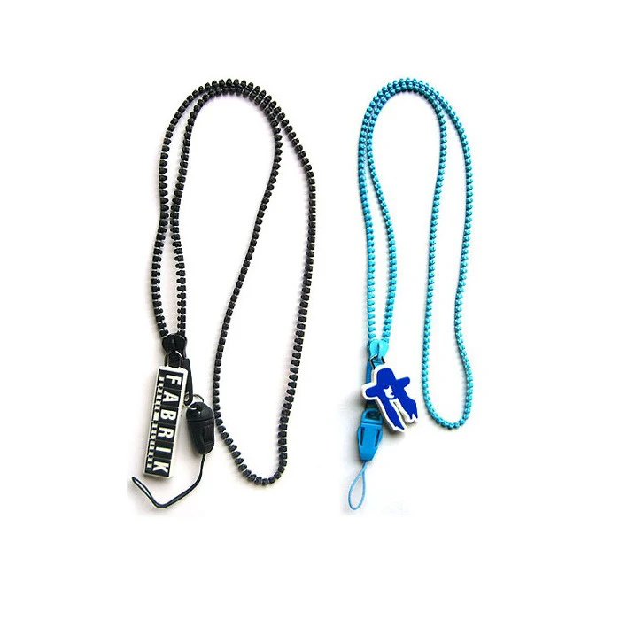 Vetoketjukaulanauha kumivetimellä yksilöllisesti toteutettuna omilla Pantone värisävyillä. Kaulanauha sopii avaimille, kulkukortille jne. Kaulaan pujotettava vetoketjun näköinen kaulanauha on huomiota herättävä tuote messuille jaettavaksi tai hauska tuote suorakampanjaasi. Sulkijassa turvamekanismi. Useita värivaihtoehtoja ja lukkovaihtoehtoja. Logomerkkaus PVC-vetimeen. Pyydä tarjous omasta toteutuksesta.