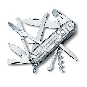 Sveitsissä valmistetussa Victorinox Huntsman taskuveitsessä 15 eri toimintoa: iso terä, puusaha, pieni terä purkinavaaja, hamastikku, kalvin, avainrengas, monikäyttöinen koukku, ruuvimeisseli 3 mm, korkkiruuvi, pullonavaaja, pinsetit, ruuvimeisseli 6 mm, kaapelin kuorija, sakset.
