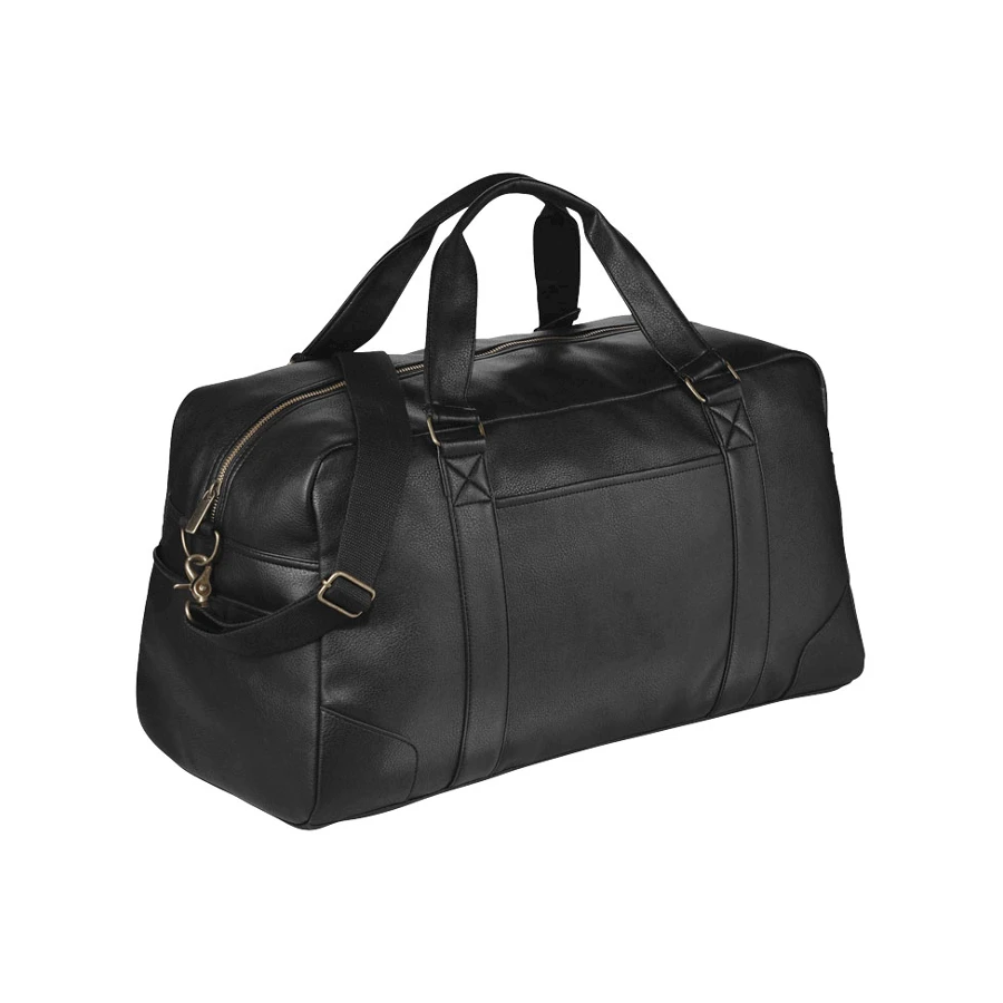 Oxford Viikonloppulaukku. Oxford laukkusarja on järkevä investointi. Vetoketjullinen pääosio, tuettu pohja. Edessä ja sivussa taskut säilytystilan lisäämiseksi. Irrotettava, säädettävä olkahihna ja kantokahvat matkustuksen helpottamiseksi. Antiikkipronssin väriset metalliosat. Nahkajäljitelmä. Väri: mustaMateriaali: nahkajäljitelmäKoko: 48 x 26 x 23 cm
