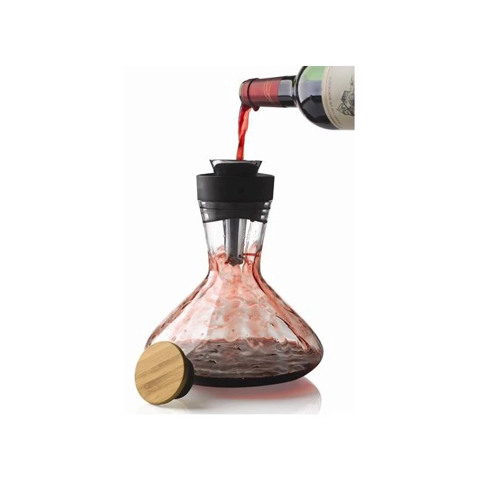 Aerato viinikarahvi tuo esille viinin aromit. Dekantoivassa viinikarahvissa viinin aromit nousevat aivan uudelle tasolle. Lasista ja ruostumattomasta teräksestä valmistetun karahvin koko on 18,9 x ⌀ 20,9 cm. Helppokäyttöinen ja täydellinen viinikarahvi tarjoaa kaiken tarvittavan viinin dekantointiin, tarjoiluun ja tyylikkääseen kattaukseen.