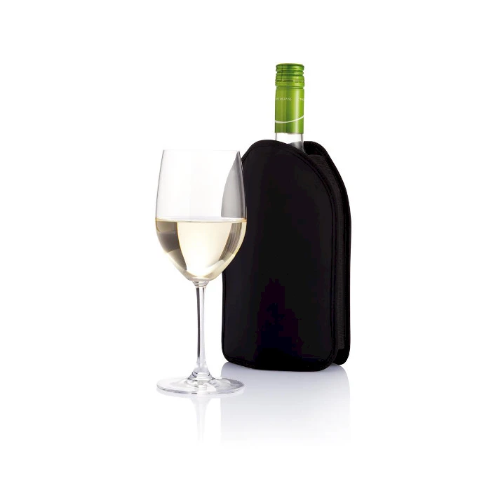 Lahjaviinin voi ojentaa yhdessä jäähdyttimen kanssa. Jäähdyttäjä myös suojaa viinin. Viinipullonjäähdytin pitää viinisi oikean lämpöisenä. Jäähdytin on pakattu lahjapakkaukseen. Väreinä musta, harmaa, turkoosi.