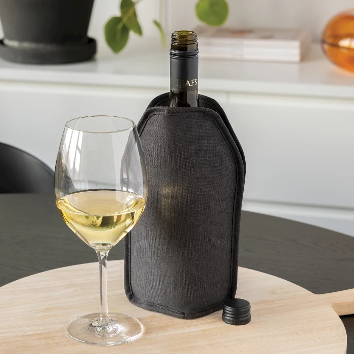 Tämä klassinen Vino AWARE™ RPET -viininjäähdytinsuojus pitää vakiokokoiset viinipullot täydellisesti viileinä tuntikausia. Laita vain suojus pakastimeen esijäähdytykseen vähintään 4 tunniksi ja nauti täydellisesti jäähdytetystä viinistä milloin tahansa! Valmistettu kierrätetystä polyesteristä, johon on upotettu AWARE™-merkkiaine. Pakattu FSC®-sertifioituun kraftpakkaukseen. Viinipullonsuoja painatuksella on tyylikäs ja käytännöllinen tapa brändätä lahjasi tai promootiotuotteesi – lisää yrityksesi logo näkyvästi lahjapakkaukseen!