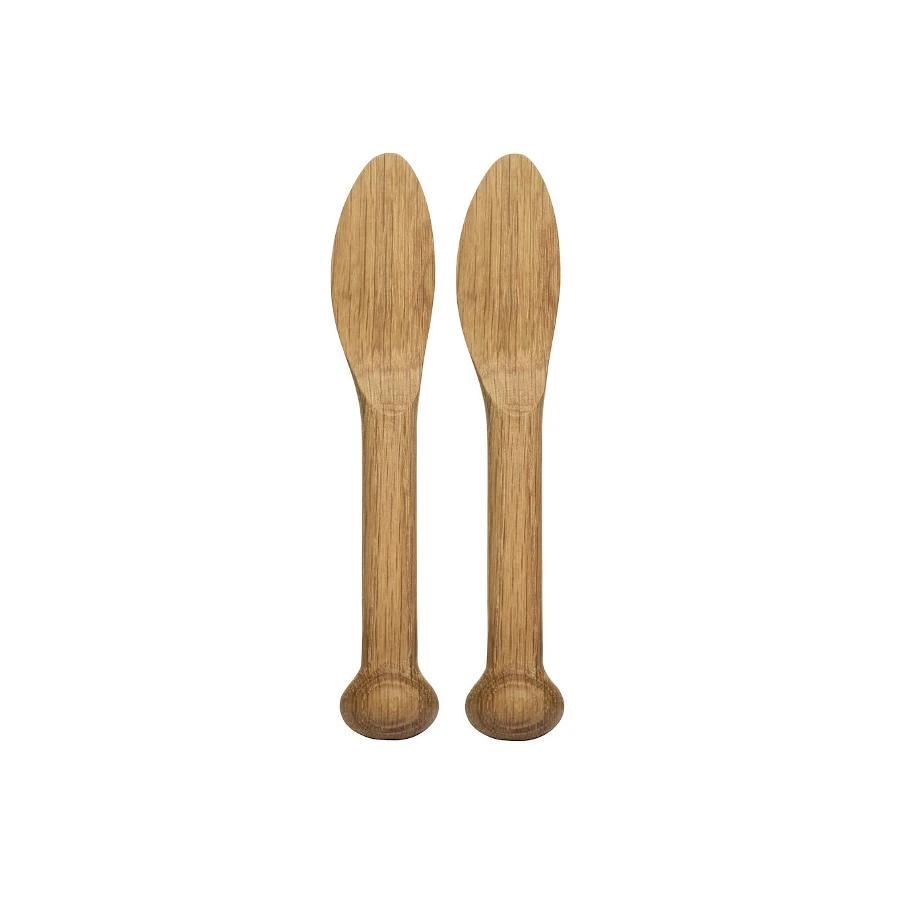 Kaksi tyylikästä tammista voiveistä. Muista öljytä säännöllisesti. Saat puiseen voiveitseen yrityksesi logomerkkauksen. Lahjapakkaus. Pyydä tarjous.Materiaali: tammeaKoko: 17,5 cm