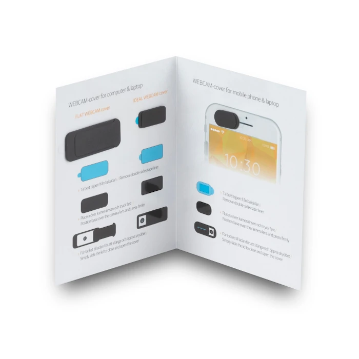 Webbikameran Security Setti sisältää 3 nettikameran suojusta korttipakkauksessa. Suojaamaton web-kamera on houkutteleva kohde hakkereille, joten se kannattaa peittää, kun webkamera ei ole käytössä. Suojaa yksityisyyttäsi ja aseta webbikameran suoja läppäriin/älypuhelimeen tai vaikkapa TV-kameraan jne. Webbikameran Security Setti sisältää kolme eri kokoista webbikameran suojaa - puhelimen, läppärin ja tietokoneen kameransuojat. Suojus on helppo liu'uttaa kameran suojaksi. Ohuessa (1 mm) nettikameran suojuksessa on tarrakiinnitys.Suojaan ja pakkaukseen voidaan tehdä haluamasi painatus. Pyydä tarjous omasta toteutuksesta.Väri: valkoinen, mustaMateriaali: ABSKoko: 39 x 16 x 1 mm, 18 × 9 x 1 mm, 15 x 9 x 1 mm