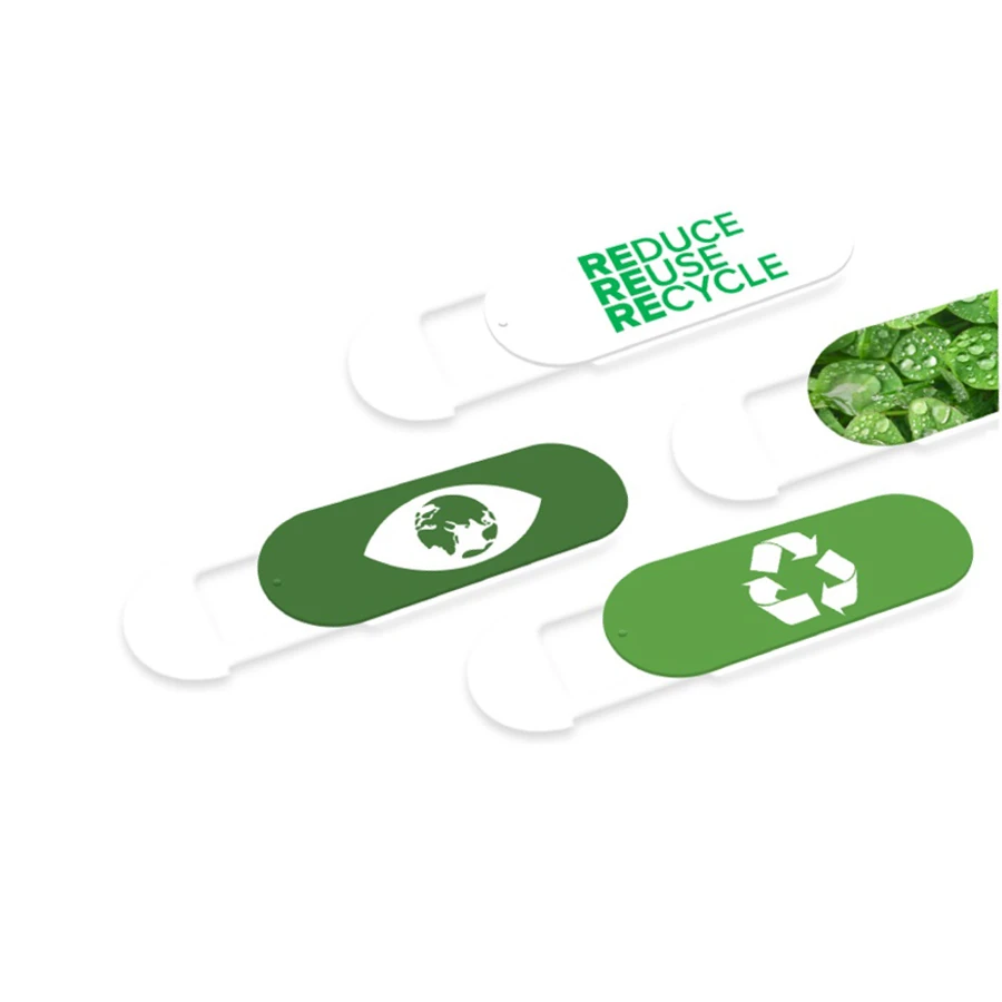 Kasvipohjaisesta biohajoavasta muovista valmistettu webkameran suoja. Webbikameran suojuksessa on sivulle liukuva mekanismi. Takana tarrakiinnitys. Saatavana valkoisena ja mustana. Yrityksesi mainospainatus voidaan toteuttaa monivärisesti suojaan. Mukana tulee taustakortti, joka on mahdollista painattaa molemmin puolin. Pyydä tarjous omasta toteutuksesta.